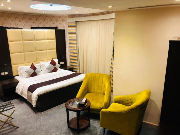 This double room has a electric kettle, dining area and air conditioning.
